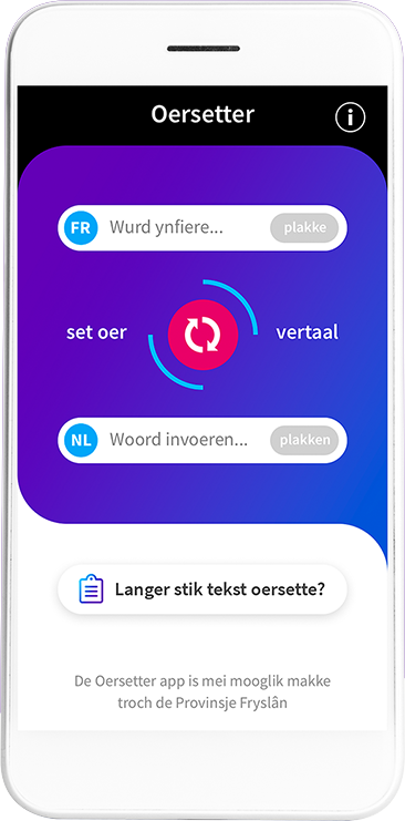 De Oersetter app vertaalt tekst door gebruik te maken van ‘machine learning’. Hoe meer teksten en vertalingen we door de app laten scannen, hoe nauwkeuriger en natuurlijker de vertalingen worden, en hoe slimmer de technologie wordt!